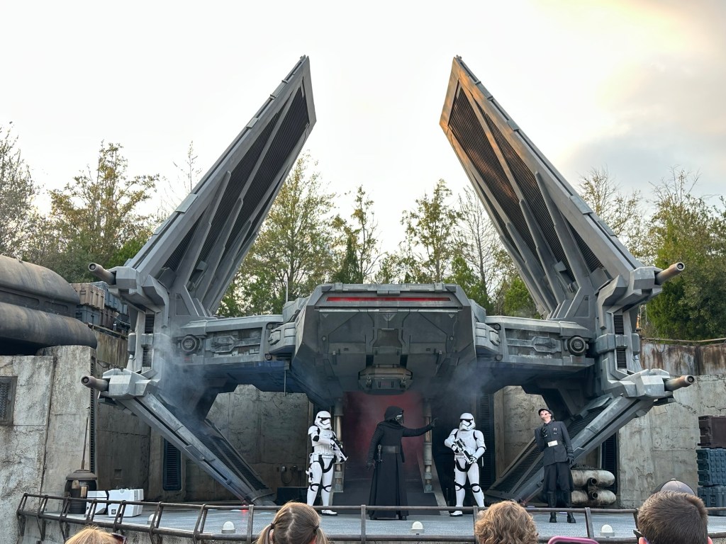 So after waiting in a long but moving line for the Skyliner, we arrived in Hollywood Studios. As expected, although we were there well before 30 minutes to park opening, we were let inside. However, although everyone is able to get into the park this early, only resort guests are able to go on rides or even access certain areas where popular rides are. Since Rise of the Resistance has some of the longest lines in the park, as well as being the ride that tends to shut down the most, we decided to head there first.