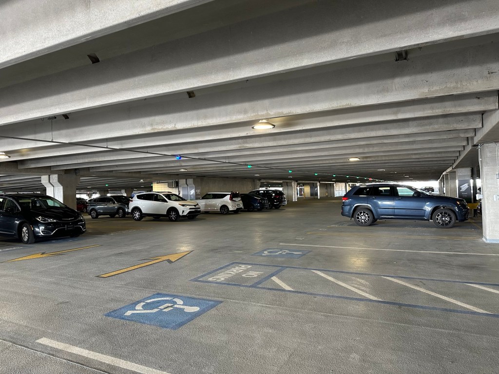 On my first visit during the open house, I was able to park in the new Terminal Lot, which features over 2,800 uncovered spaces. It was incredibly easy to walk from this lot to the doors of the new terminal. You will have to take an escalator or elevator up two flights to reach departures from here, which I thought was a downside. During my two visits, wayfinding was a bit difficult from the bottom floor of the new terminal, but that might have changed in the time since. This lot will cost $19 per day in advance or $25 day-of. For that price and for the fact that your car will be unprotected from the elements regardless, I would recommend the Shuttle Lots over this area. However, this lot (as well as the garage) will offer hourly pricing, so it would be a good spot to park if you are picking someone up but want to wait for them inside rather than the informality of driving up to the curb from the free lot.